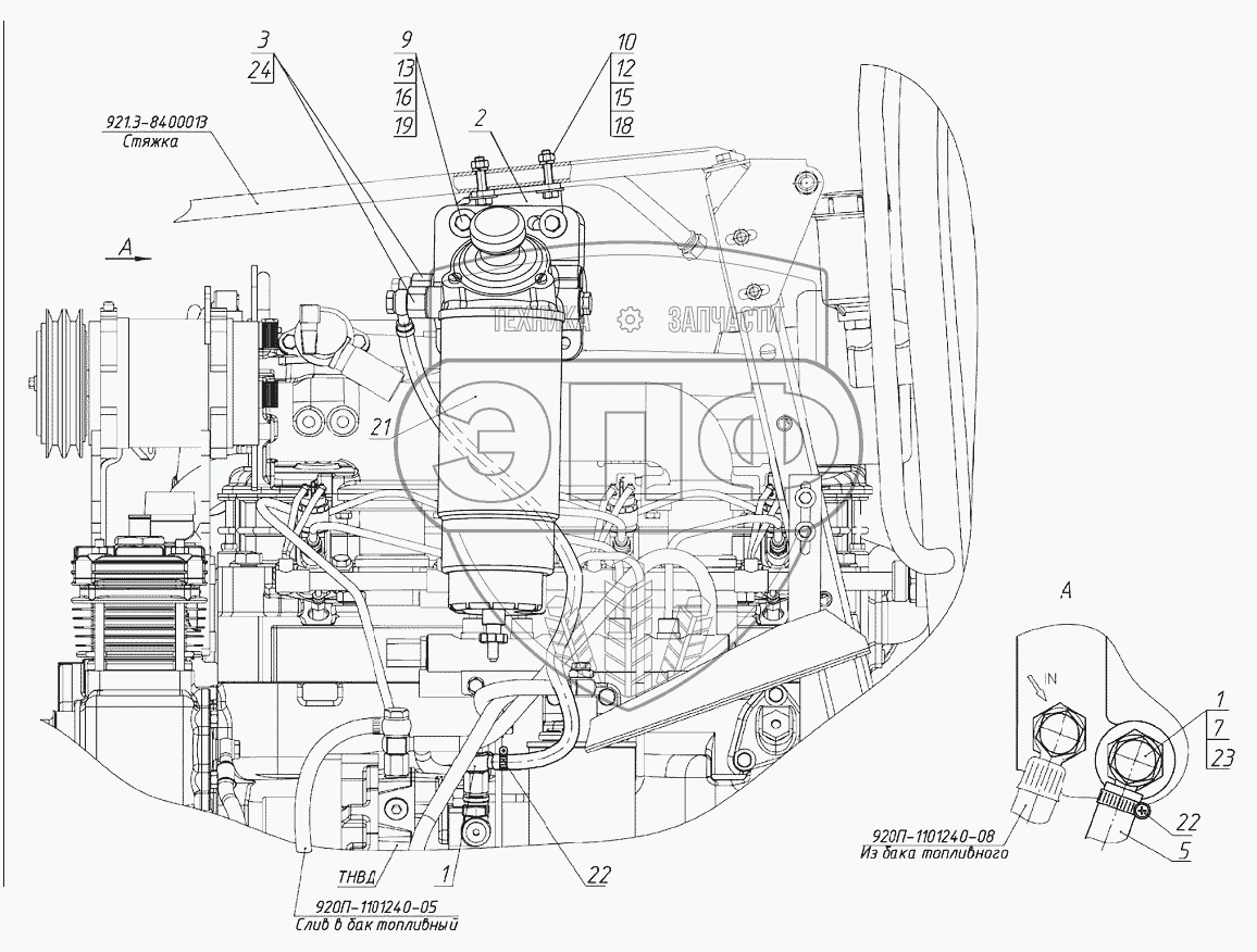 Каталог запасных частей к технике: МТЗ 1025.5. Установка топливного фильтра