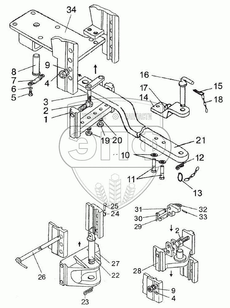 Каталог запасных частей к технике: МТЗ 1220. Тягово-сцепное устройство (варианты комплектации)