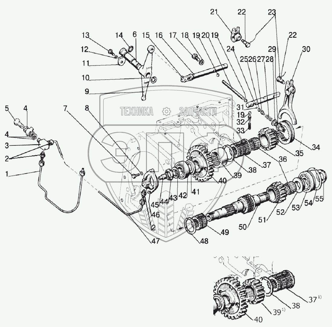 Каталог запасных частей к технике: МТЗ 1220. Вал пониженных передач (16F+8R)