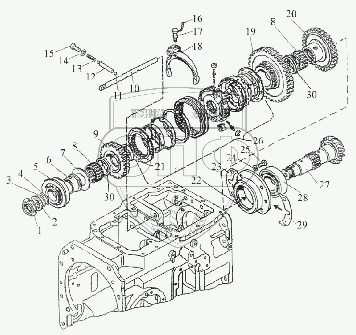 Каталог запасных частей к технике: МТЗ 1220. Вал вторичный (24F+12R)