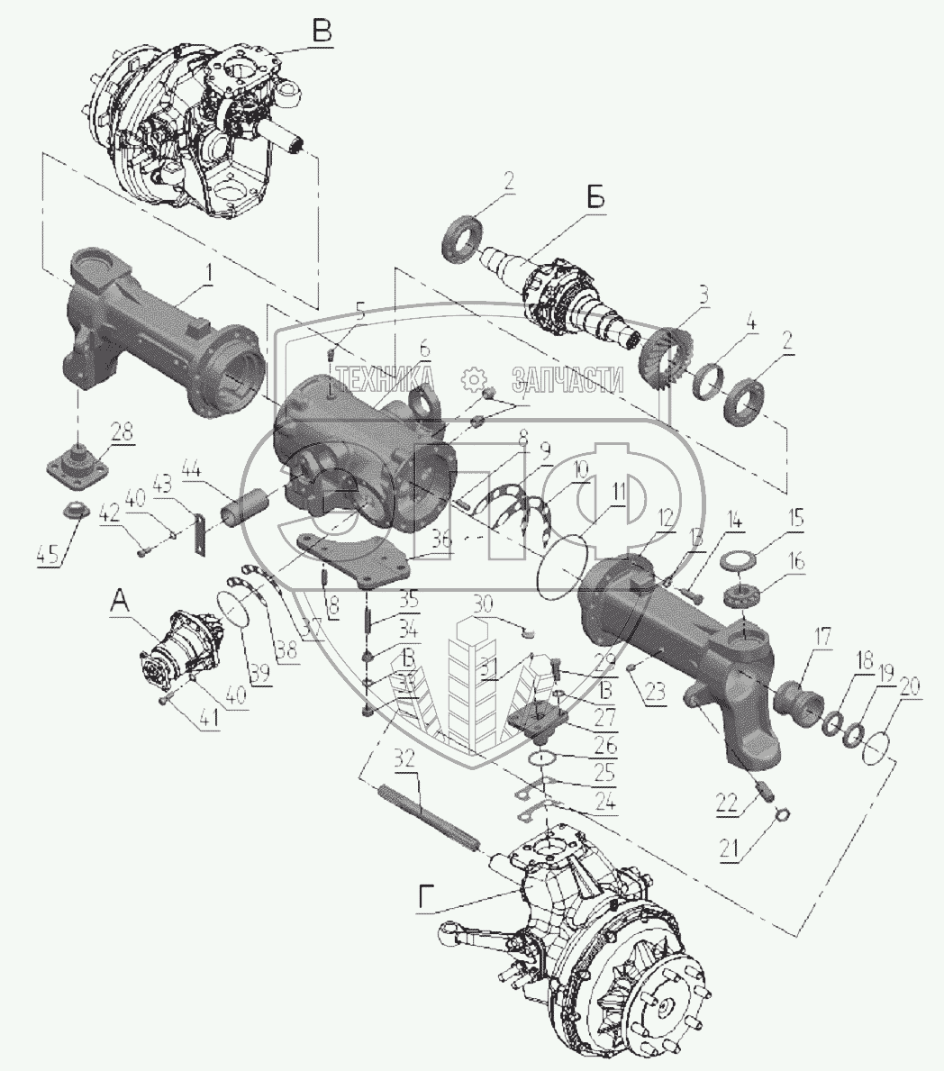 Каталог запасных частей к технике: МТЗ 1220.5. Передний ведущий мост 822-2300020