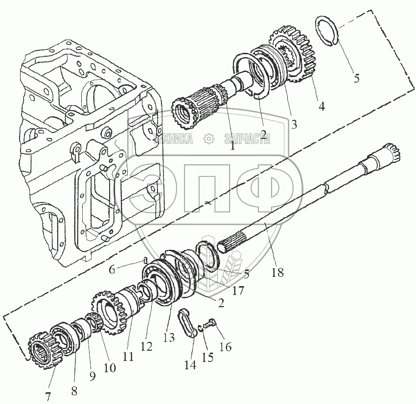 Каталог запасных частей к технике: МТЗ 1523.5. Вал блока шестерен