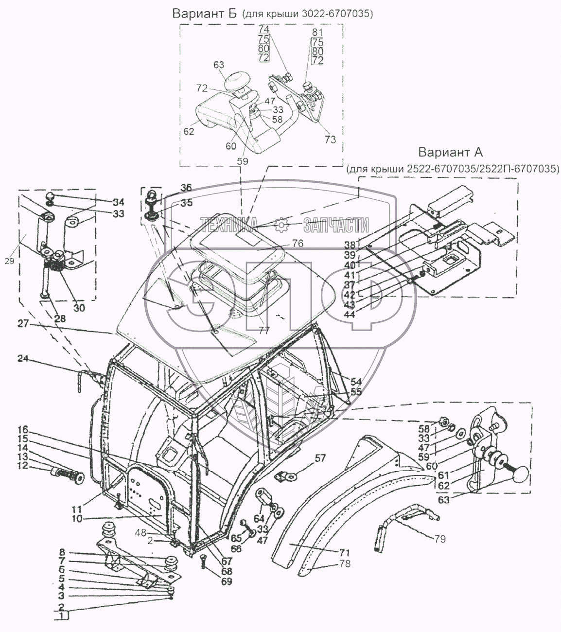 Каталог запасных частей к технике: МТЗ 1523.5 с ГМТ. Кабина трактора