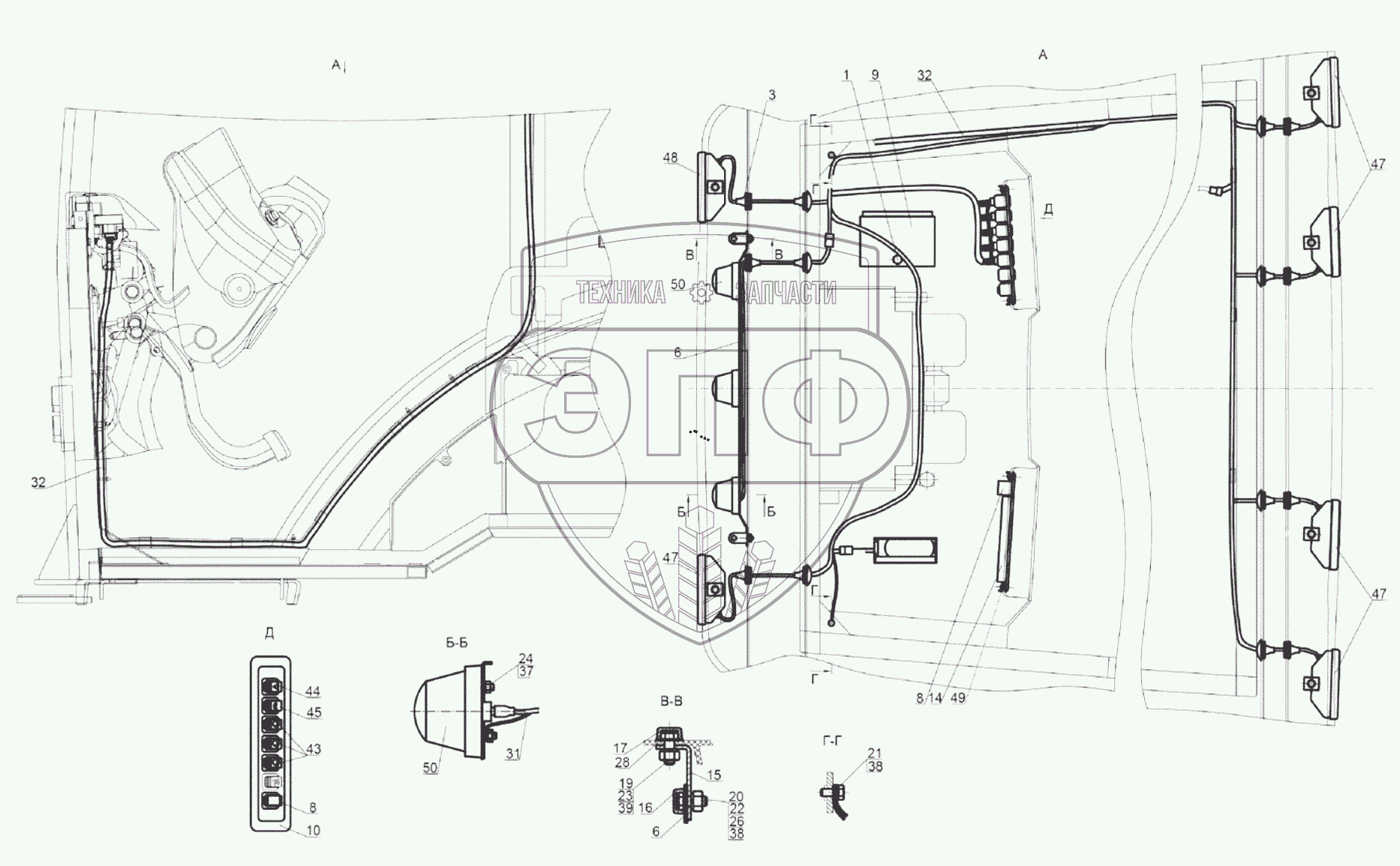 Каталог запасных частей к технике: МТЗ 1523.5 с ГМТ. Установка фар рабочих