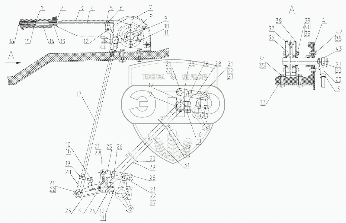 Каталог запасных частей к технике: МТЗ 2122.3/2122.4. Управление стояночным тормозом