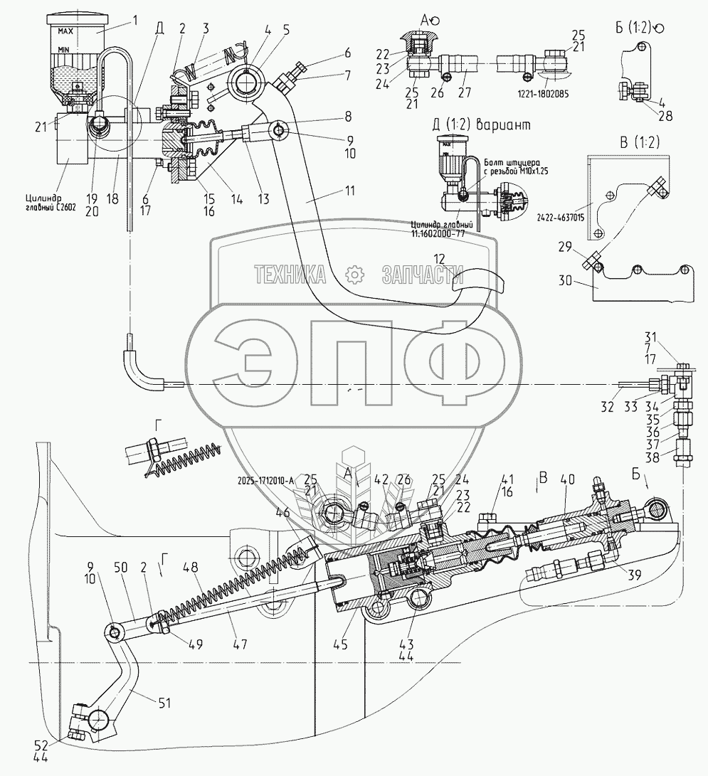 Каталог запасных частей к технике: МТЗ 2122.3/2122.4. Управление сцеплением