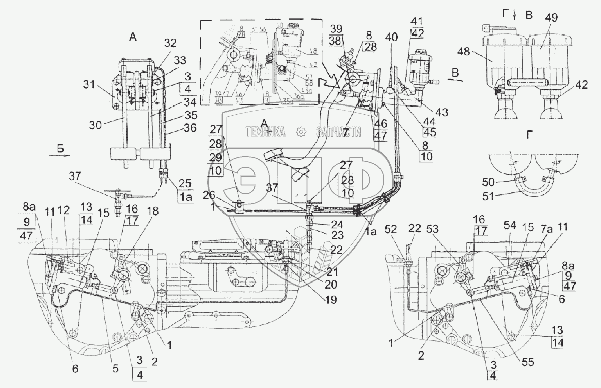 Каталог запасных частей к технике: МТЗ 2122.3/2122.4. Управление тормозами
