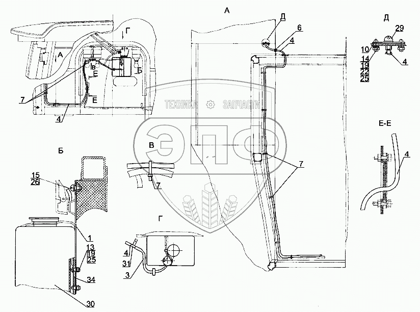Каталог запасных частей к технике: МТЗ 2122.3/2122.4. Установка стеклоомывателя