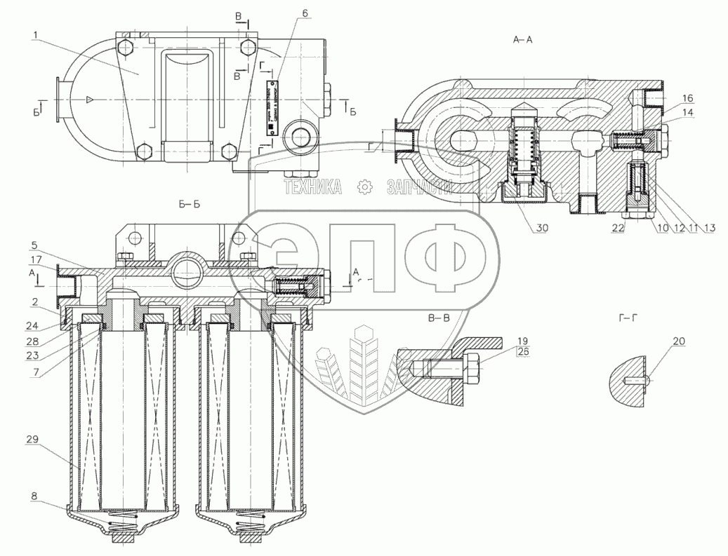 Каталог запасных частей к технике: МТЗ 3022ДЦ.1. Фильтр сдвоенный