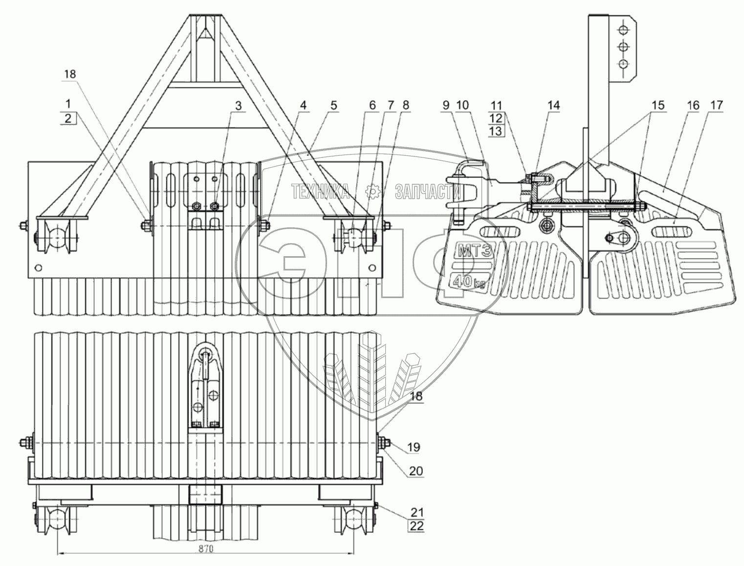 Каталог запасных частей к технике: МТЗ 3022ДЦ.1. Кронштейн с грузами