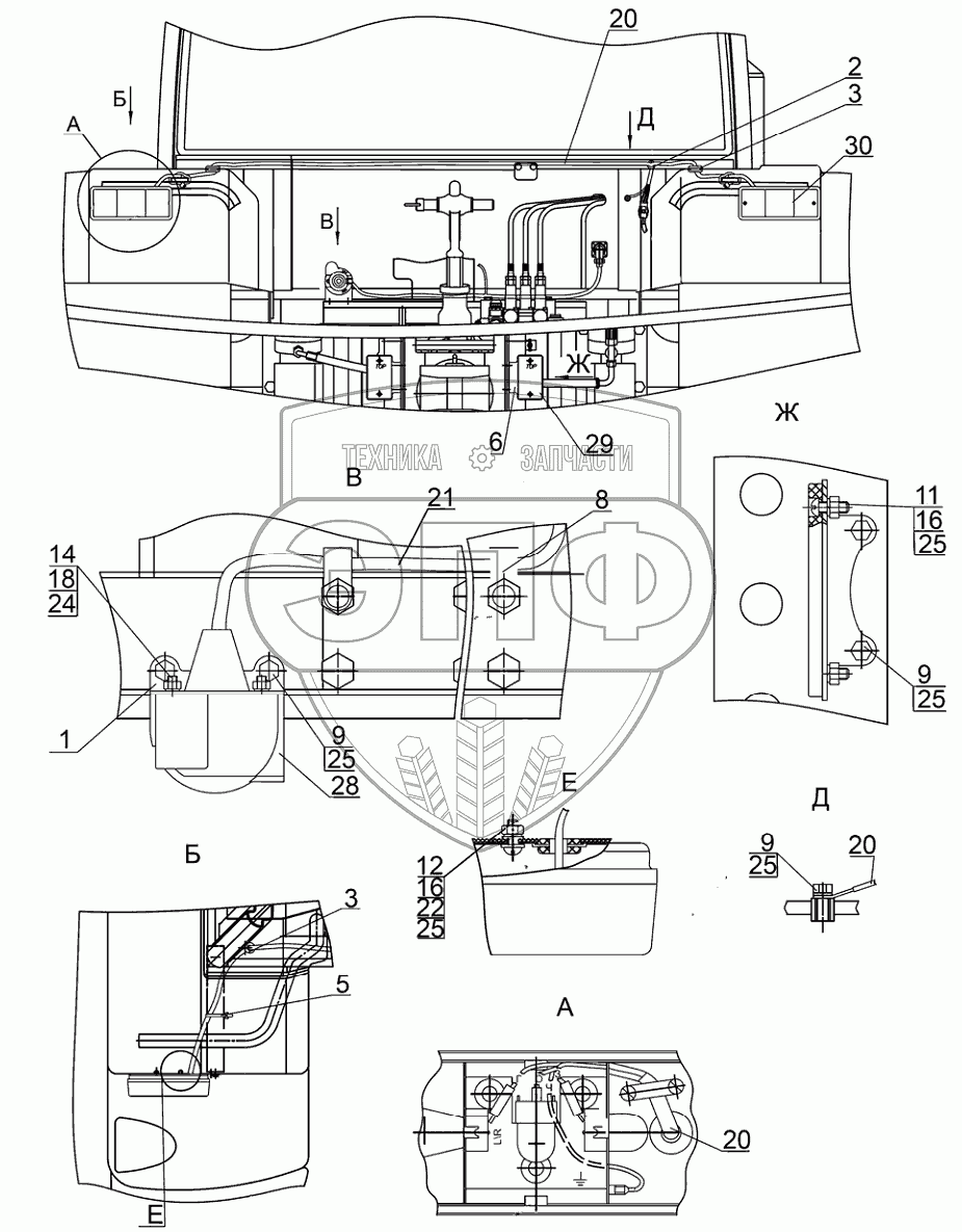 Каталог запасных частей к технике: МТЗ 3022ДЦ.1. Установка фонарей задних
