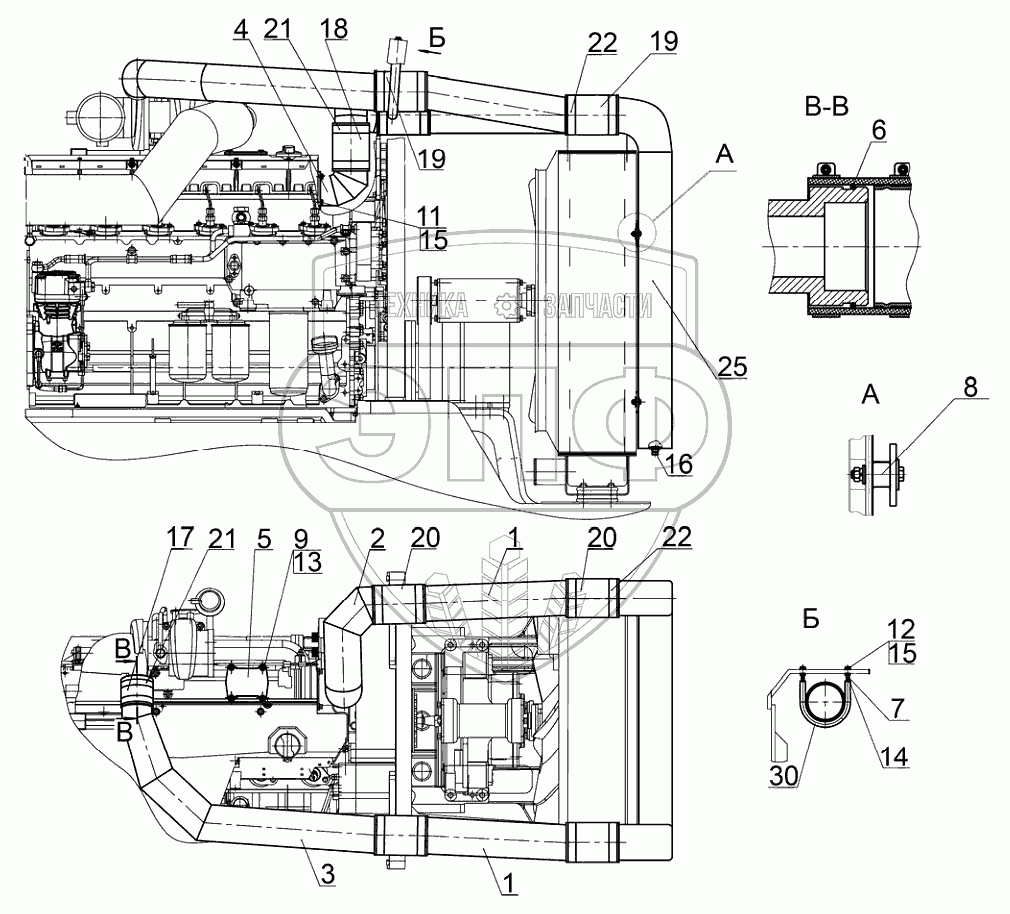 Каталог запасных частей к технике: МТЗ 3022ДЦ.1. Установка охладителя