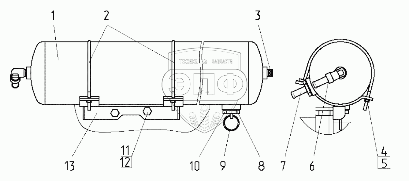 Каталог запасных частей к технике: МТЗ 320.4М. Установка баллона