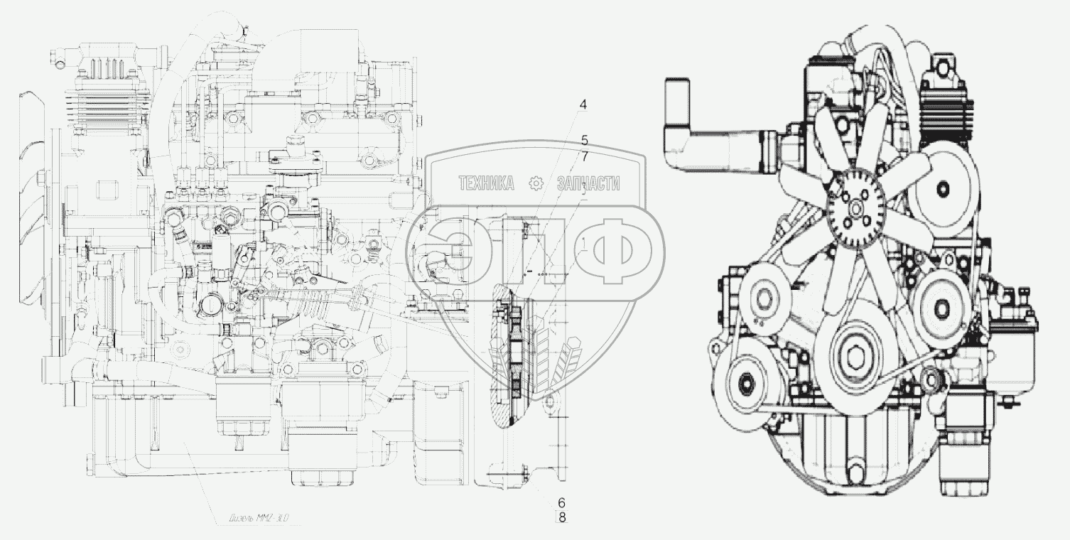 Каталог запасных частей к технике: МТЗ 320.4М. Установка двигателя