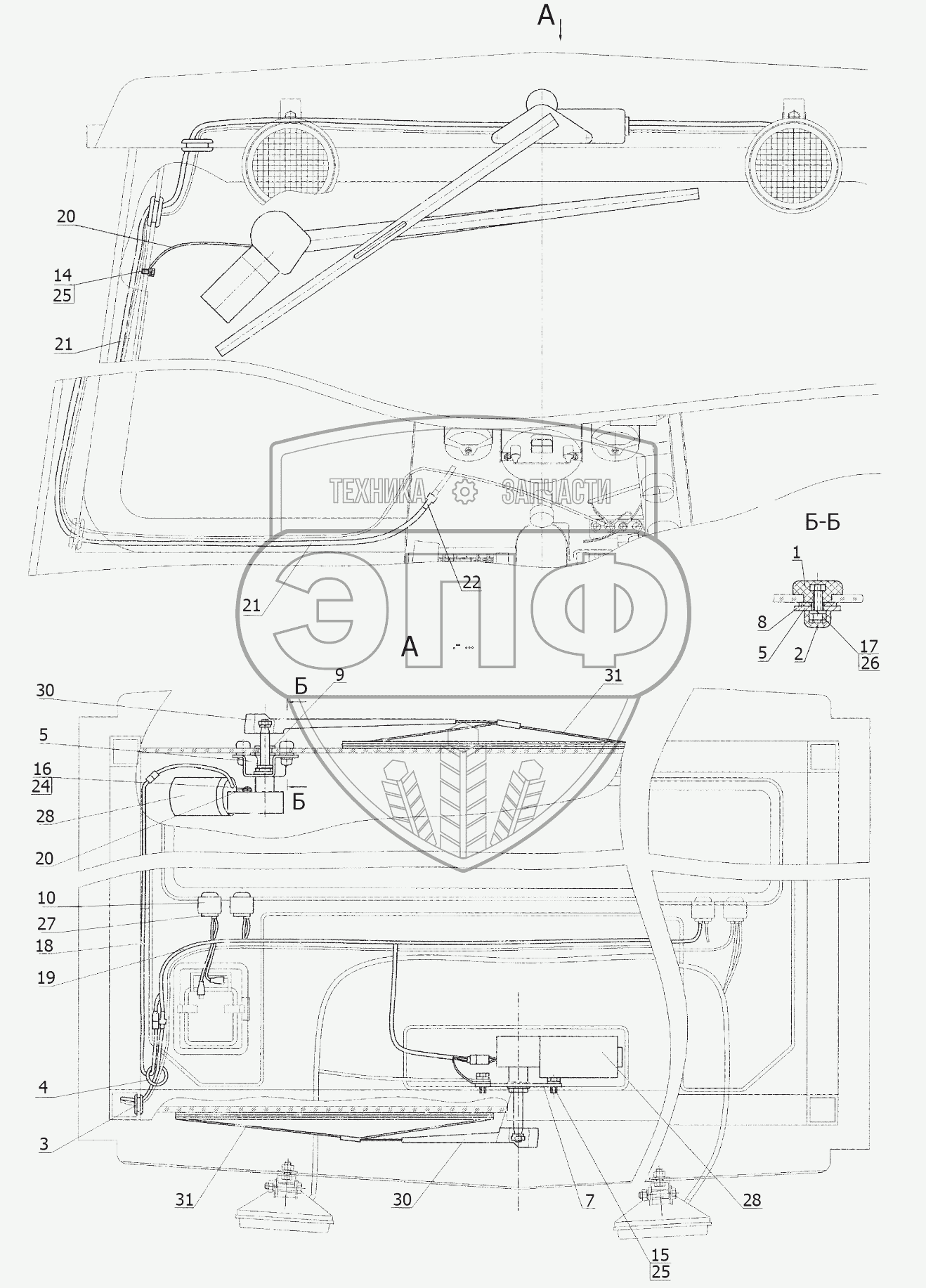 Каталог запасных частей к технике: МТЗ 320.4М. Установка стеклоочистителей