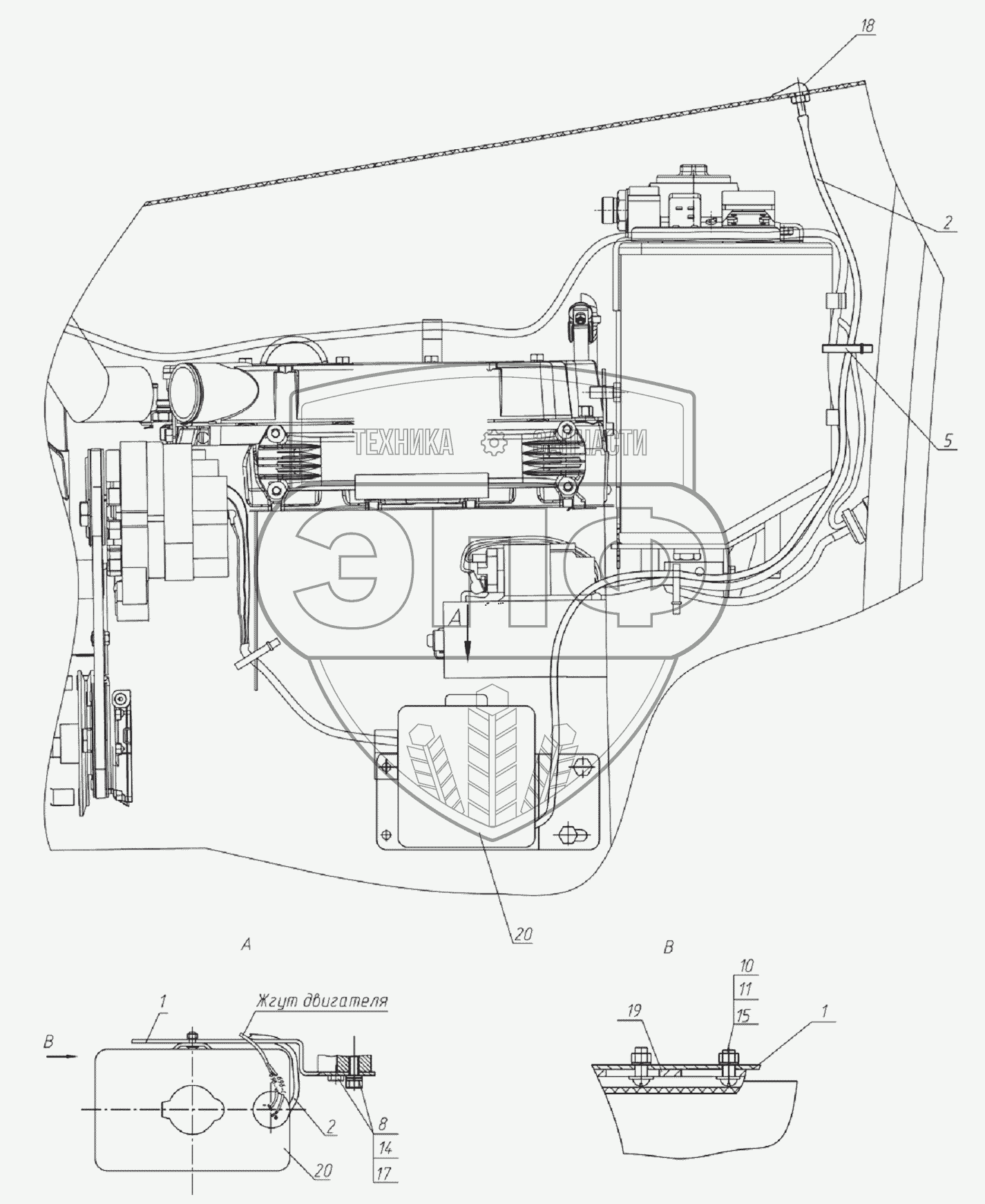 Каталог запасных частей к технике: МТЗ 622. Установка стеклоомывателя