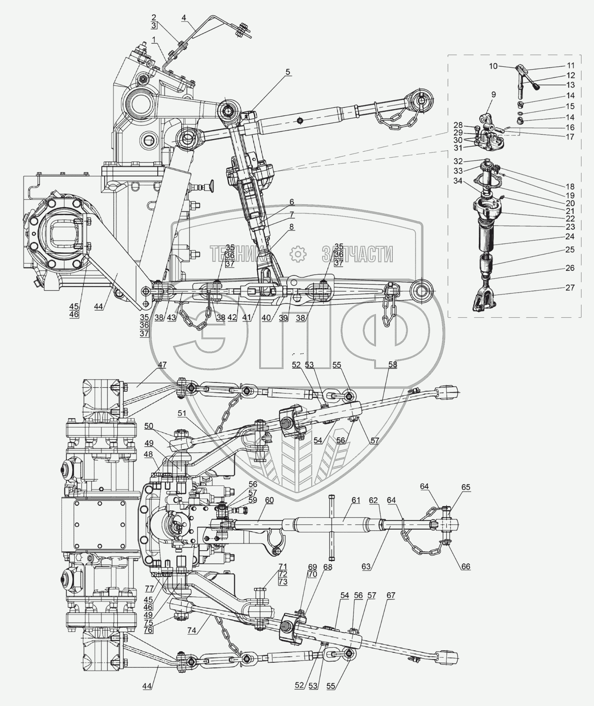 Каталог запасных частей к технике: МТЗ 622. Устройство навесное заднее