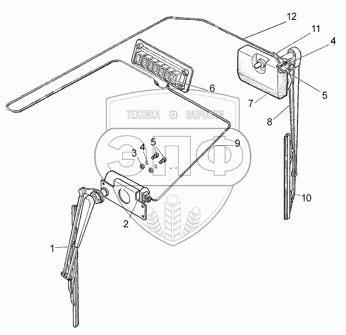 Каталог запасных частей к технике: МТЗ 80Х. Установка стеклоочистителя