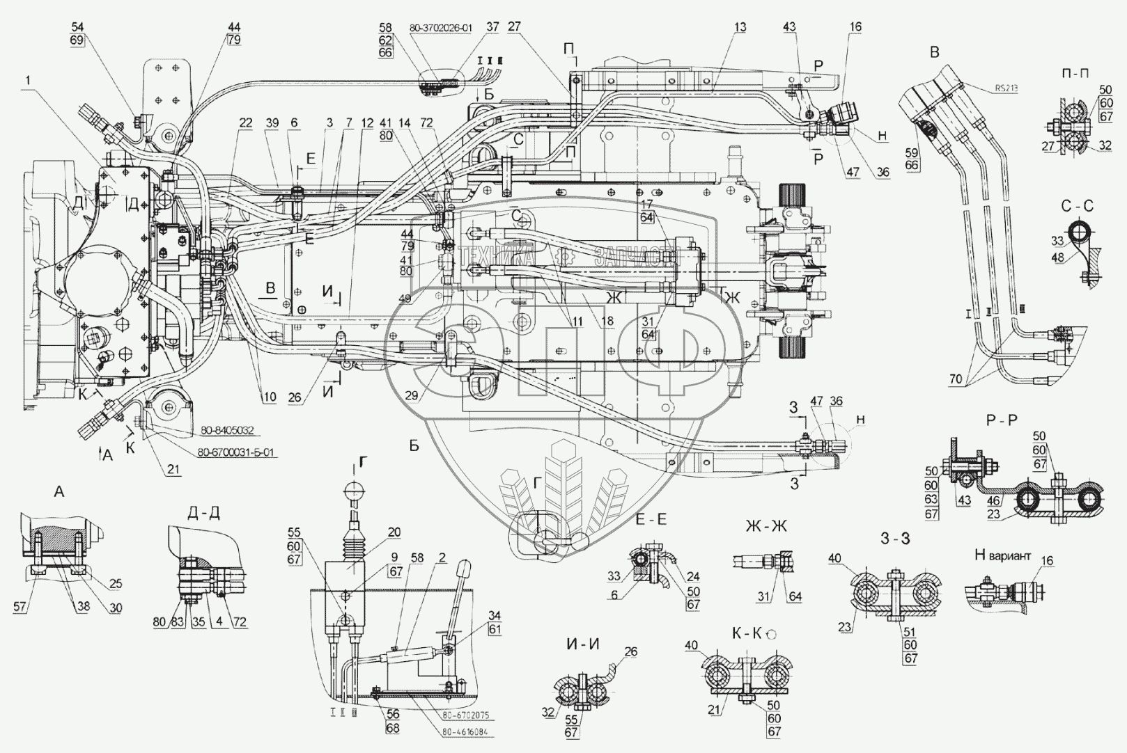 Каталог запасных частей к технике: МТЗ 892. Гидросистема 952-4600010 Основная комплектация