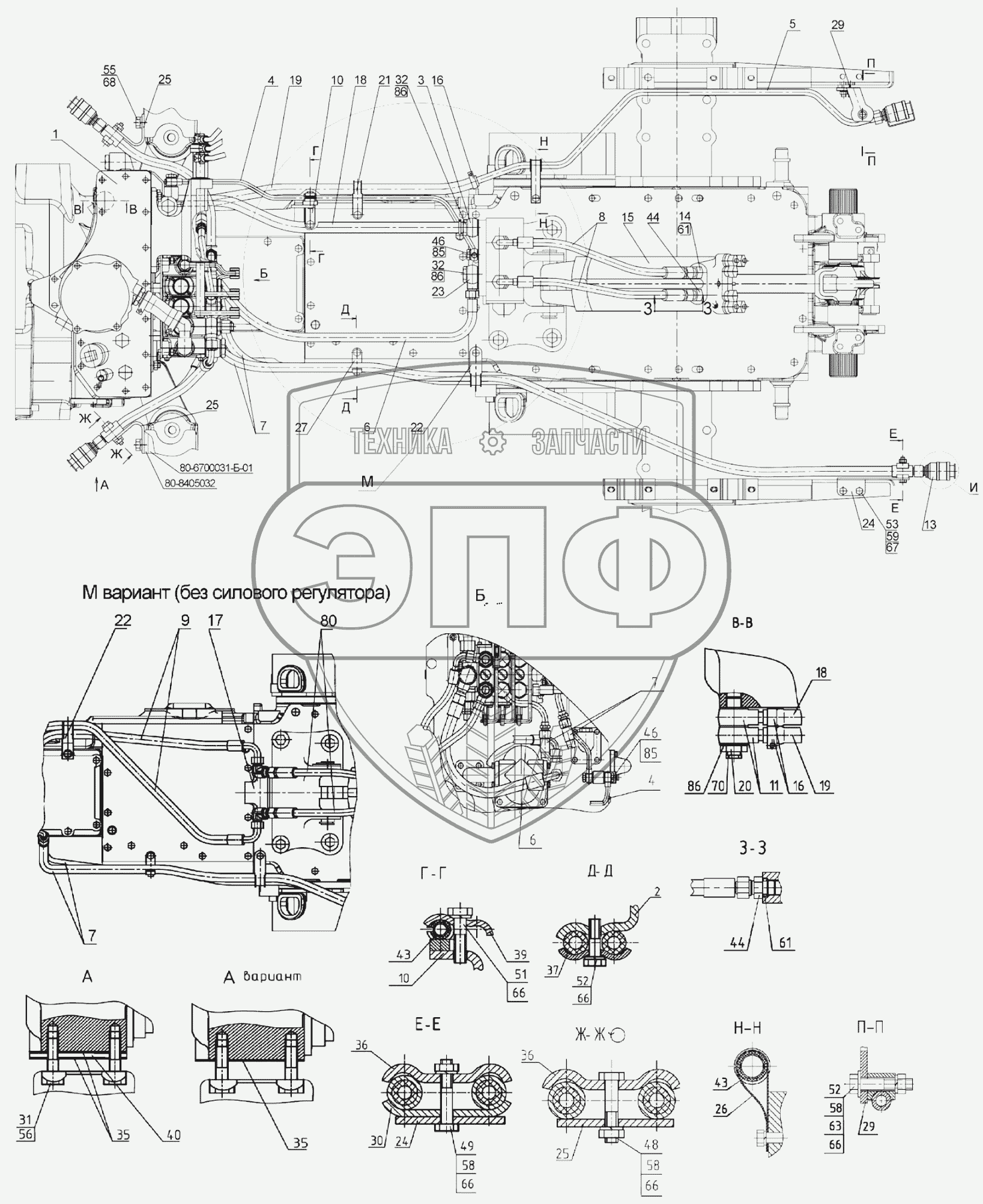 Каталог запасных частей к технике: МТЗ 892. Гидросистема Р90-4600010 Основная комплектация