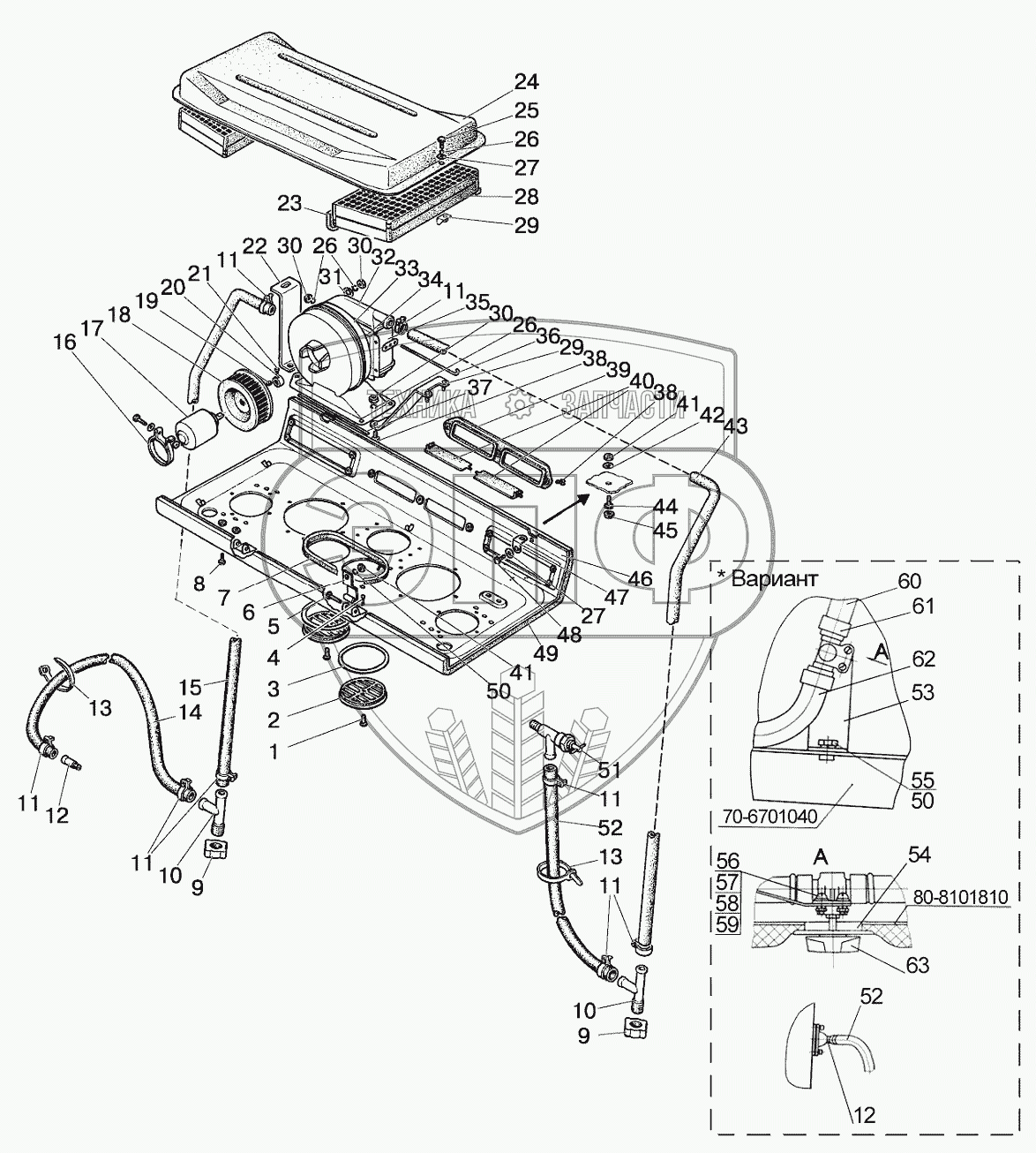 Каталог запасных частей к технике: МТЗ 892. Отопитель