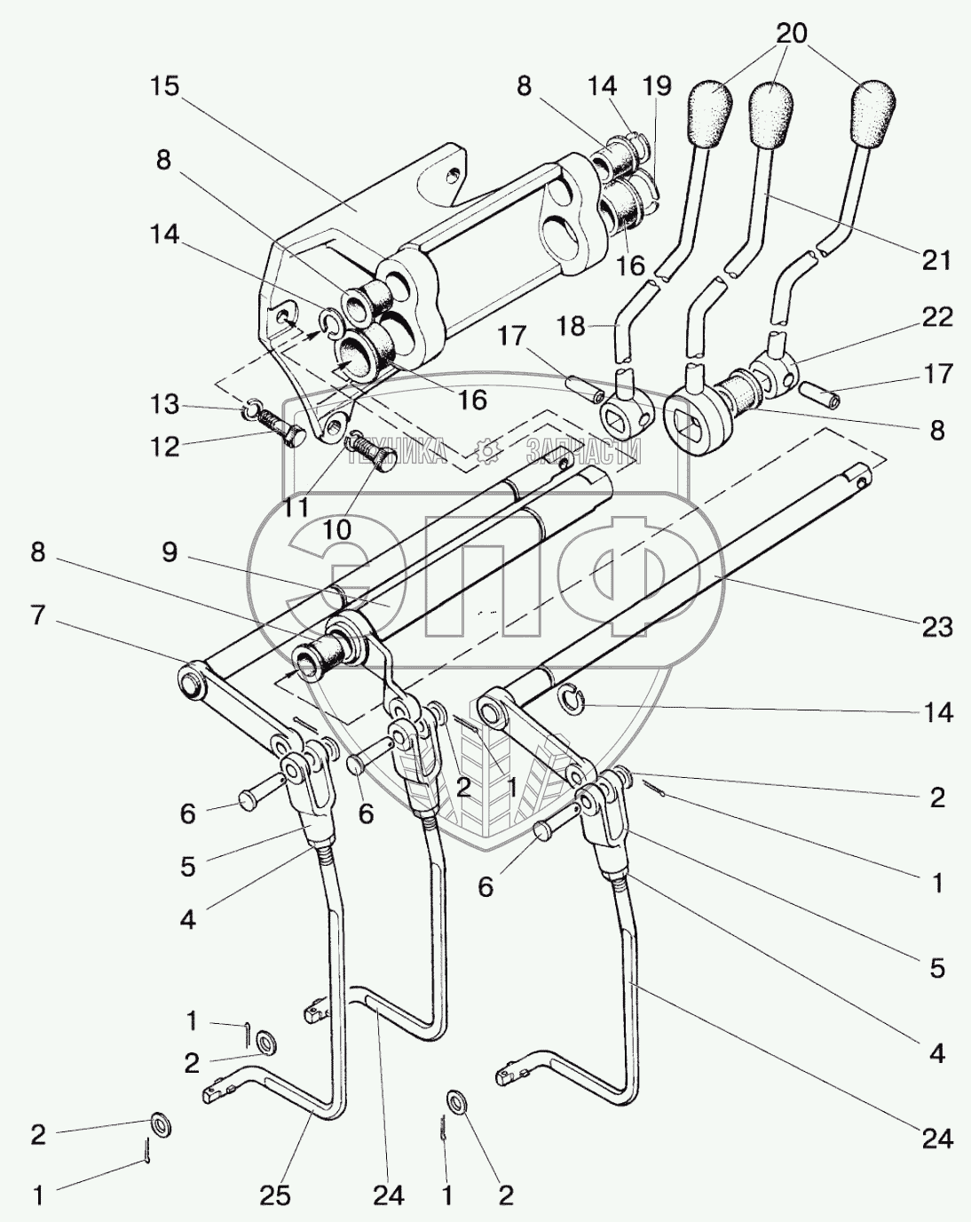 Каталог запасных частей к технике: МТЗ 892. Управление гидрораспределителем РП 70