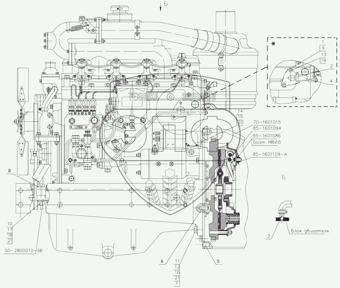 Каталог запасных частей к технике: МТЗ 892. Установка двигателя