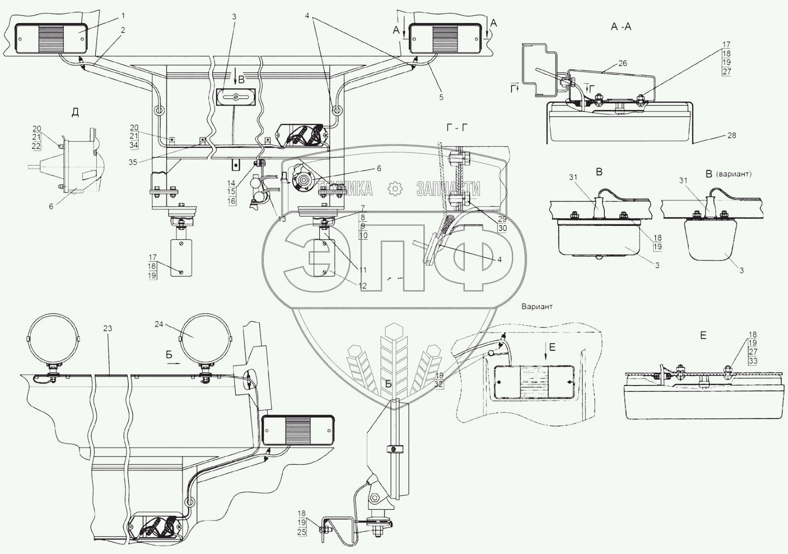 Каталог запасных частей к технике: МТЗ 892. Установка фонарей задних