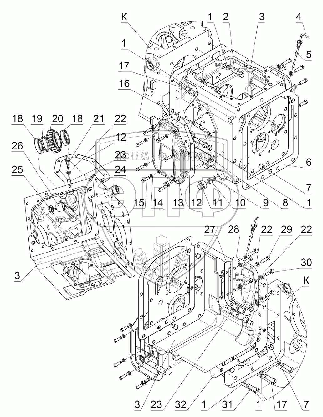 Каталог запасных частей к технике: МТЗ 922.5. Корпус КП. Привод ПВМ