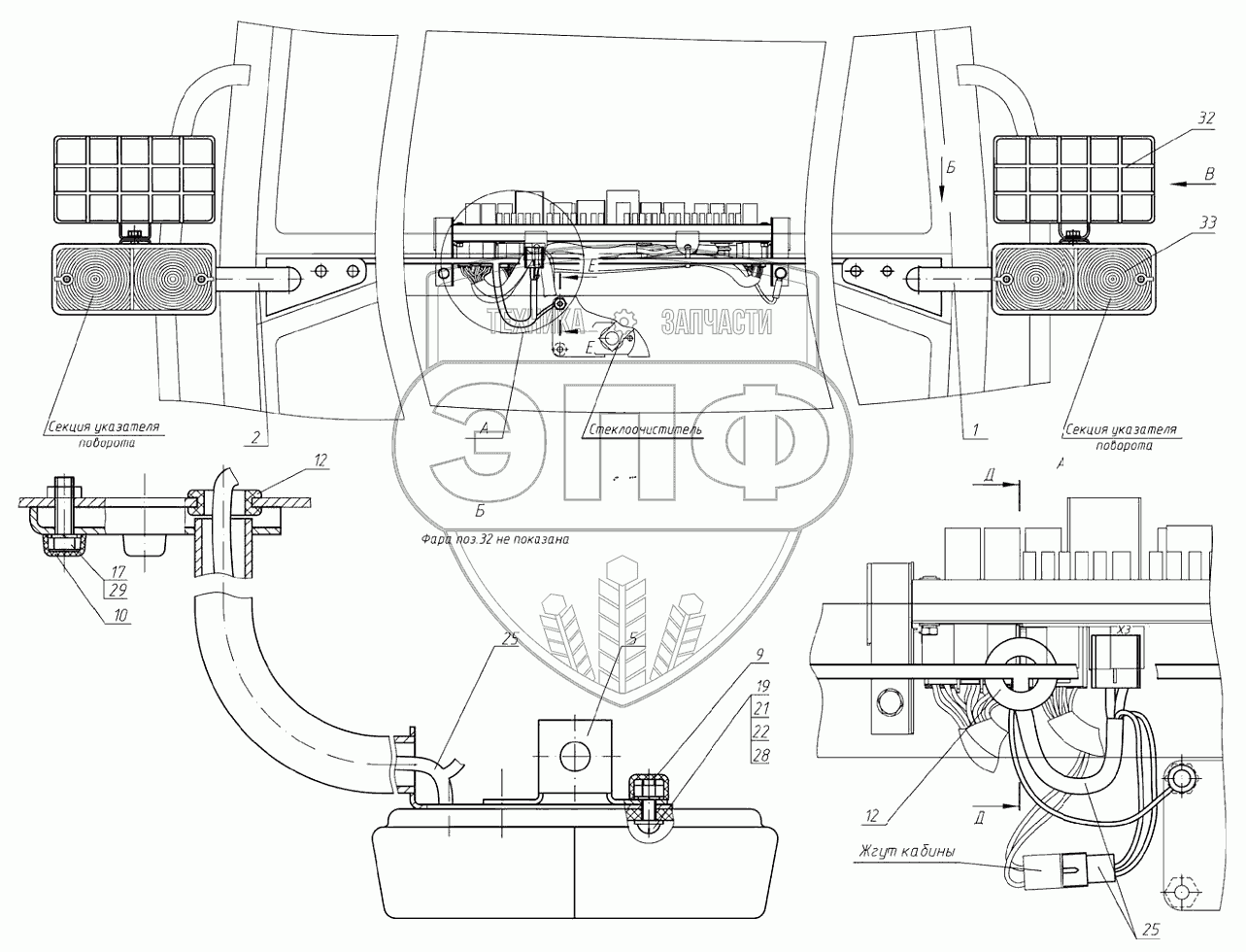 Каталог запасных частей к технике: МТЗ 922.5. Установка фонарей передних