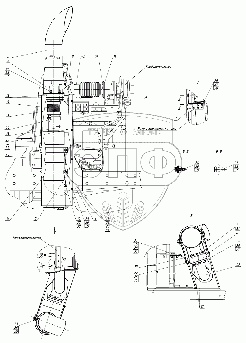 Каталог запасных частей к технике: МТЗ 922.5. Установка глушителя