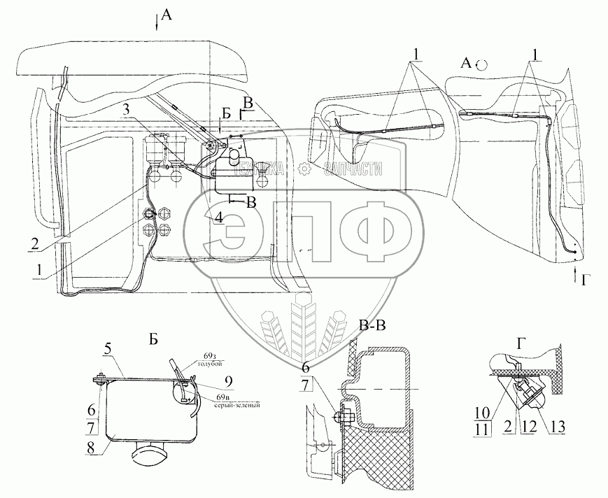 Каталог запасных частей к технике: МТЗ 922.5. Установка стеклоомывателя