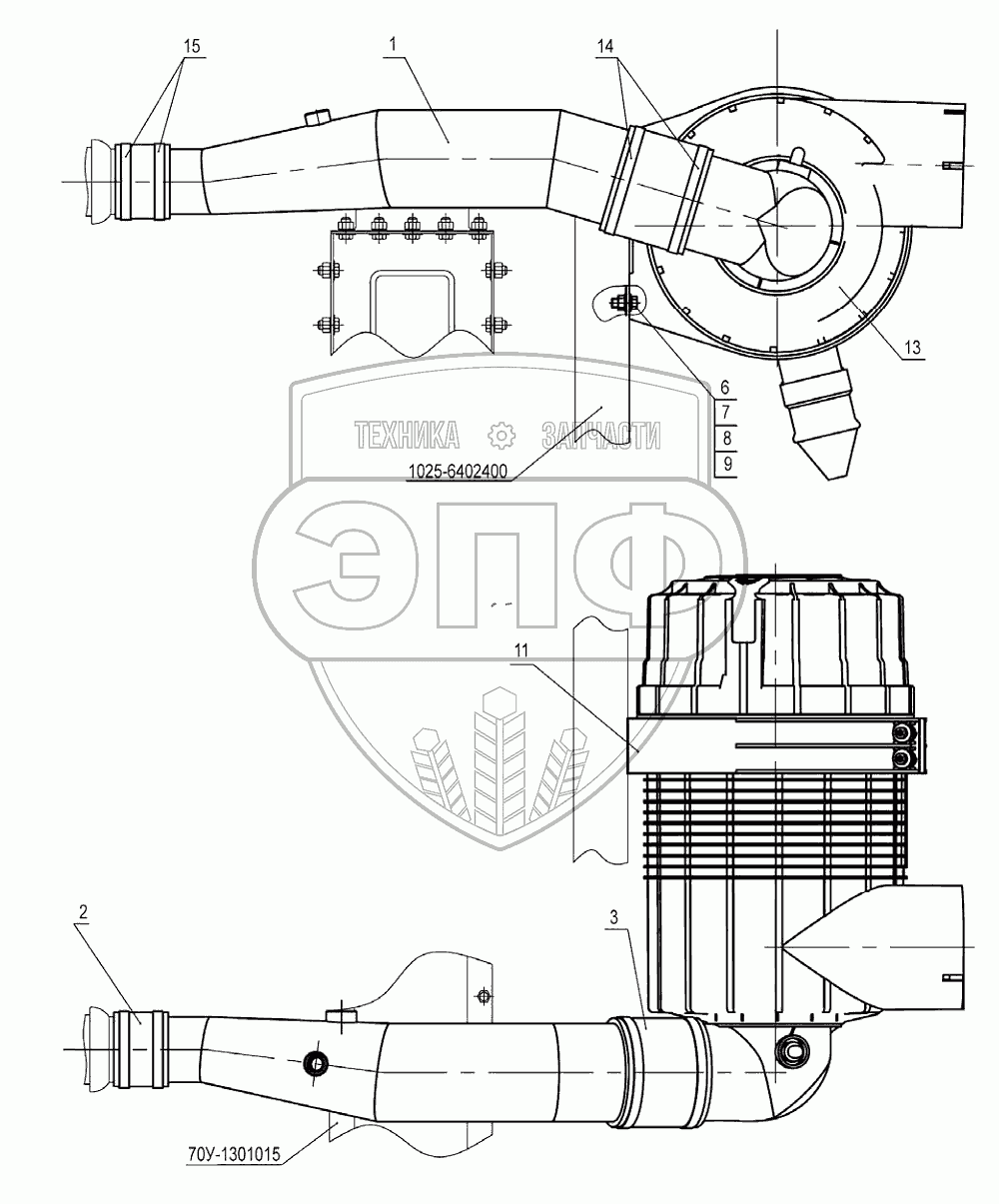 Каталог запасных частей к технике: МТЗ 922.5. Установка воздухоочистителя