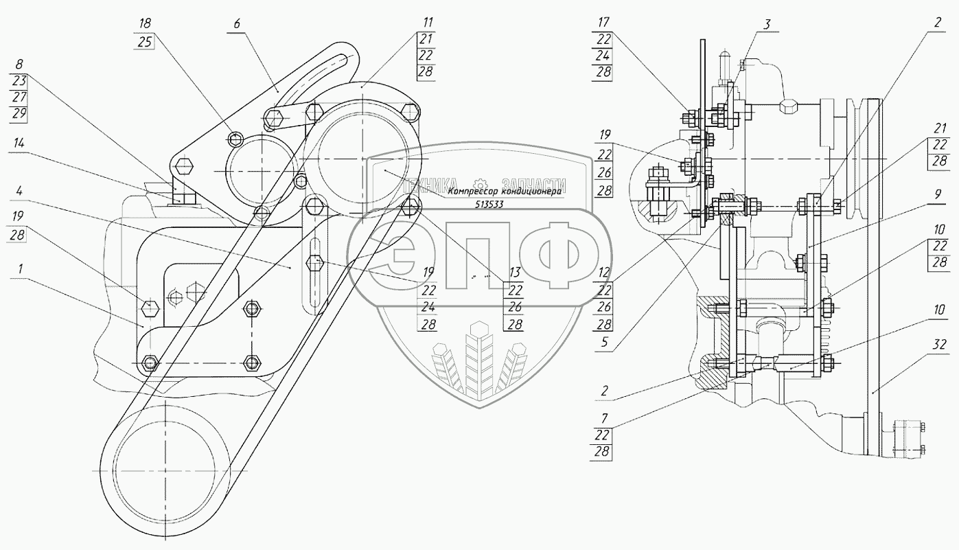 Каталог запасных частей к технике: МТЗ 923.4. Компрессор кондиционера 950-8114010