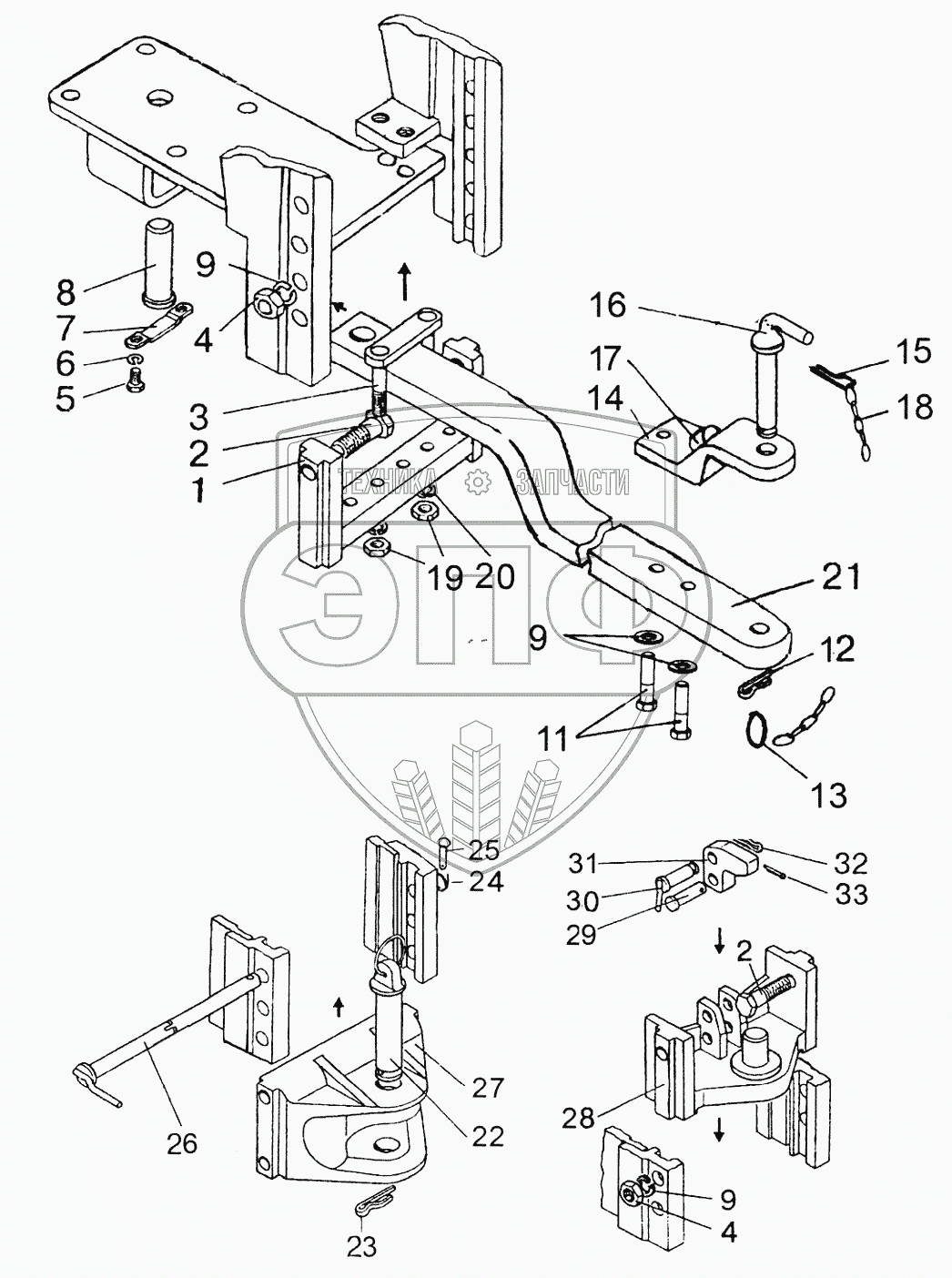 Каталог запасных частей к технике: МТЗ 923.4. Тягово-сцепное устройство (варианты комплектации)