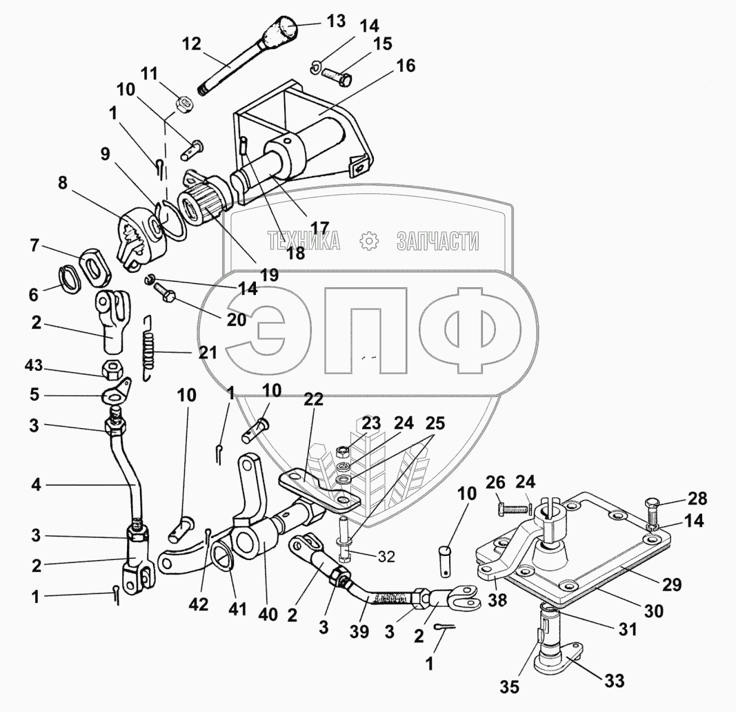 Каталог запасных частей к технике: МТЗ 923.4. Управление синхронизированным редуктором/ускорителем