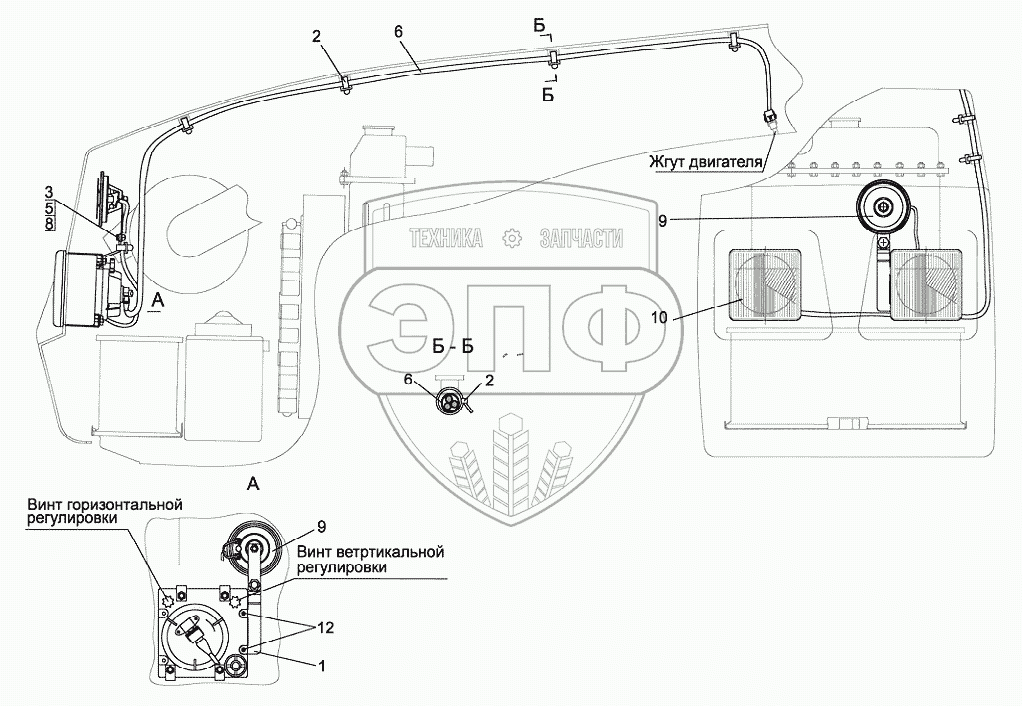 Каталог запасных частей к технике: МТЗ 923.4. Установка фар дорожных