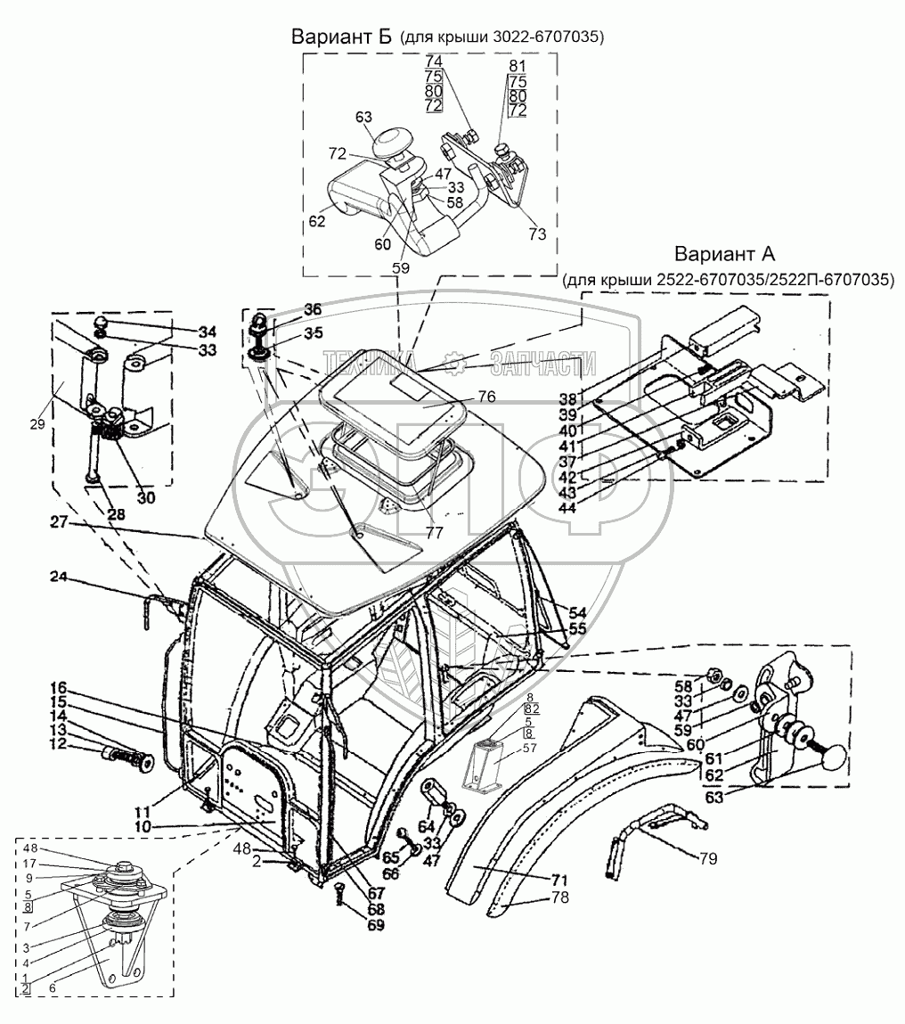 Каталог запасных частей к технике: МТЗ 923.5. Кабина трактора