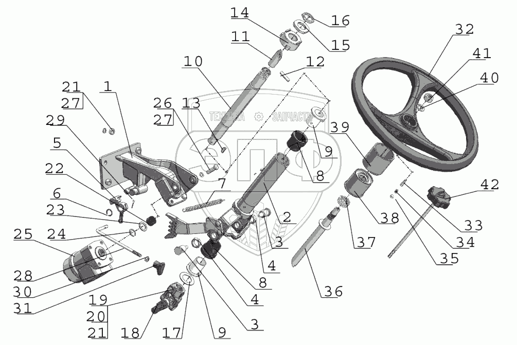 Каталог запасных частей к технике: МТЗ 923.5. Колонка рулевая