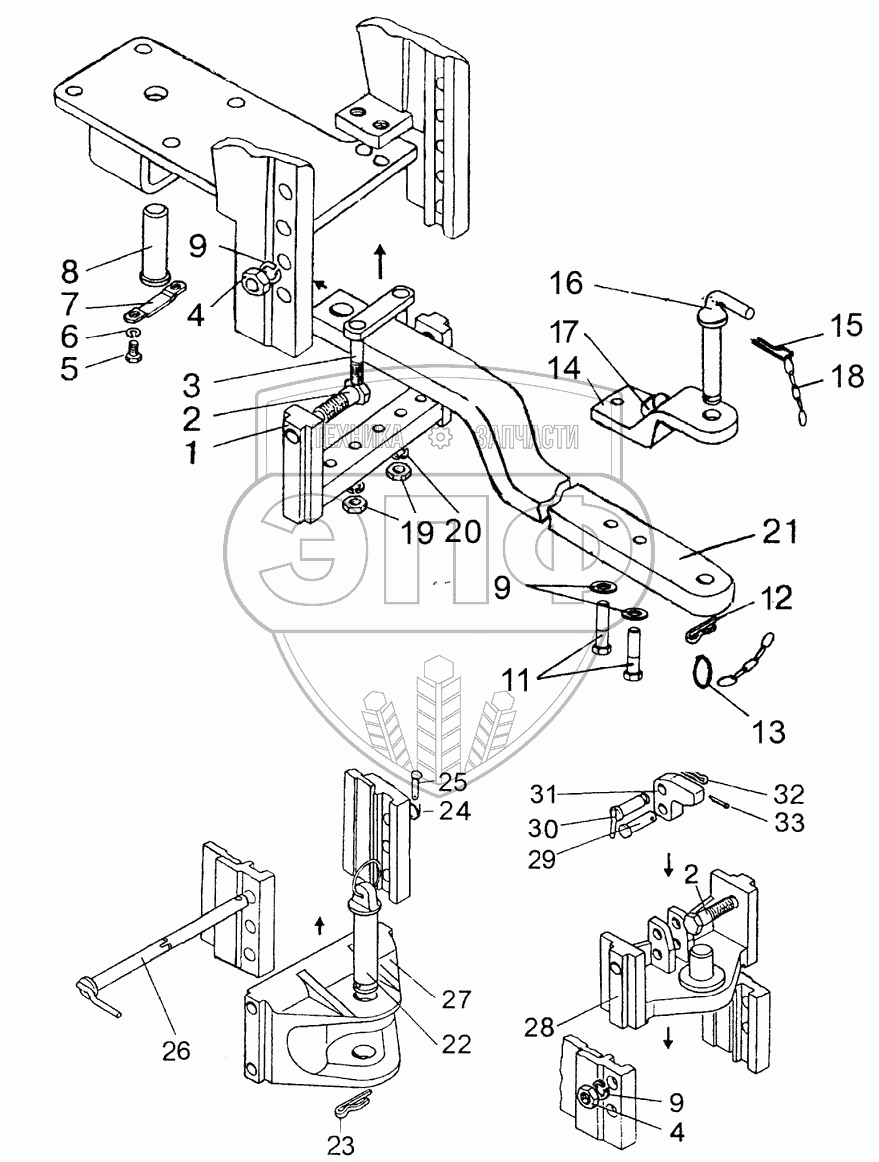 Каталог запасных частей к технике: МТЗ 923.5. Тягово-сцепное устройство (варианты комплектации)