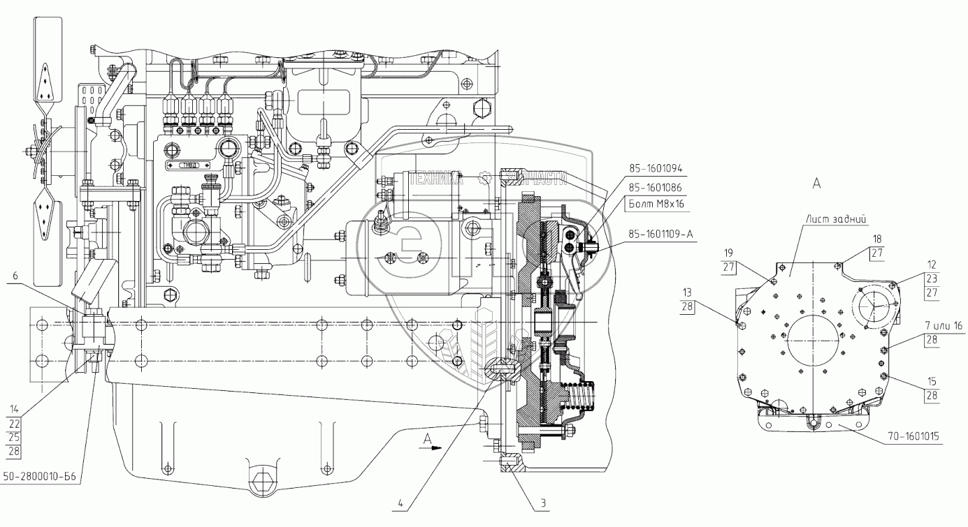 Каталог запасных частей к технике: МТЗ 923.5. Установка двигателя