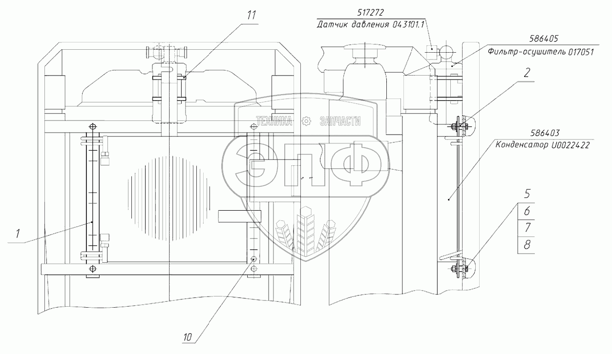 Каталог запасных частей к технике: МТЗ 923.5. Установка конденсатора 1025-8112010
