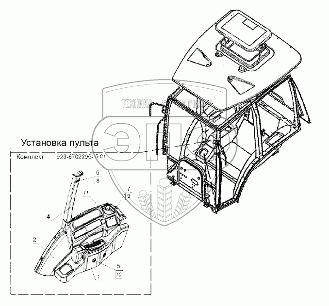 Каталог запасных частей к технике: МТЗ 923.5. Установка пульта 923-6702295-Б-01