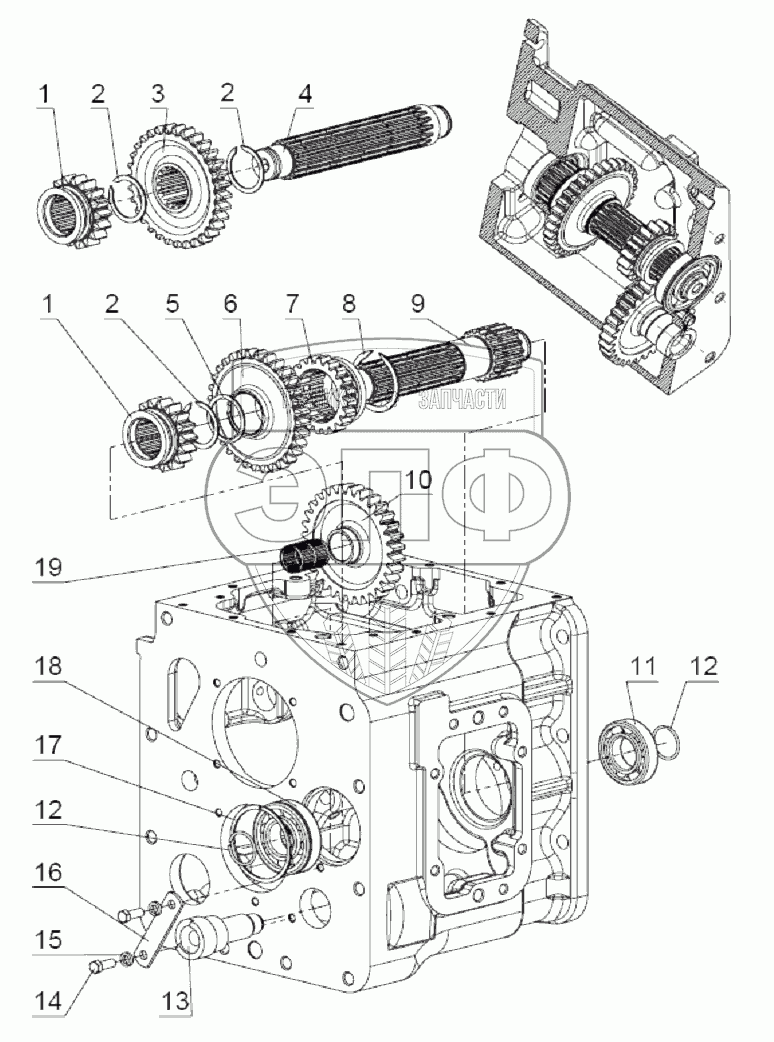 | 9 | 70-1701380 | Вал 1-ой передачи и заднего хода в сборе | Нет на складе | |