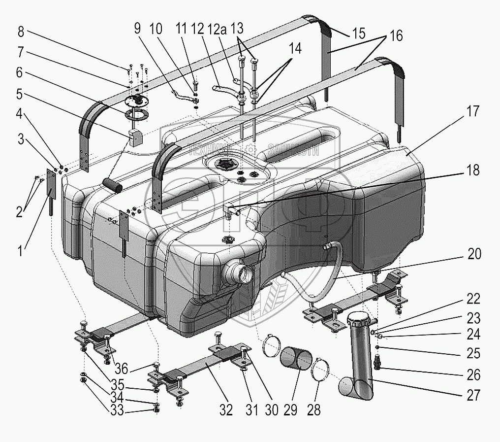 Каталог запасных частей к технике: МТЗ 92П. Бак топливный (с гидроподъемником)
