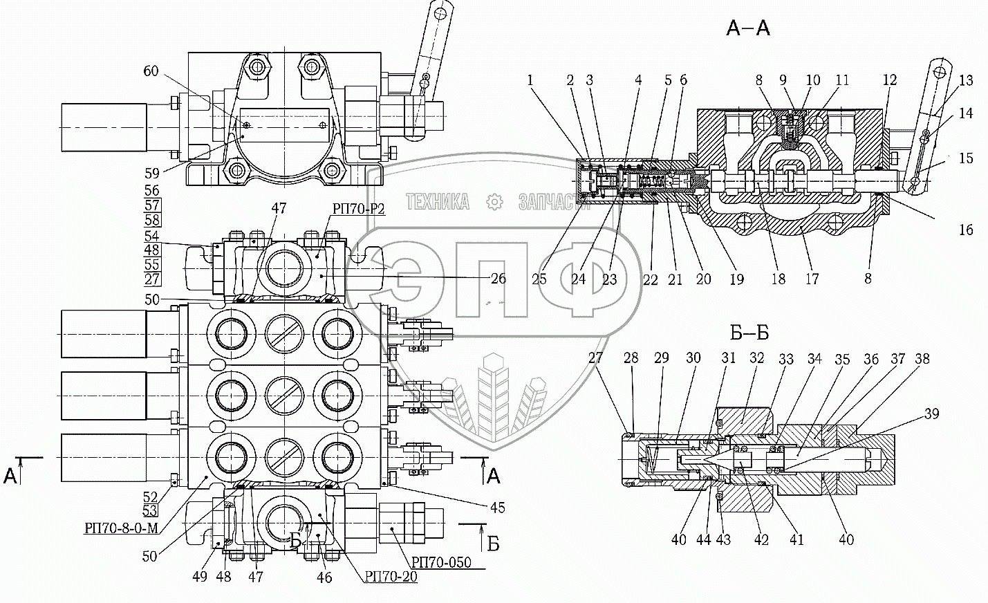 Каталог запасных частей к технике: МТЗ 92П. Гидрораспределитель РП70