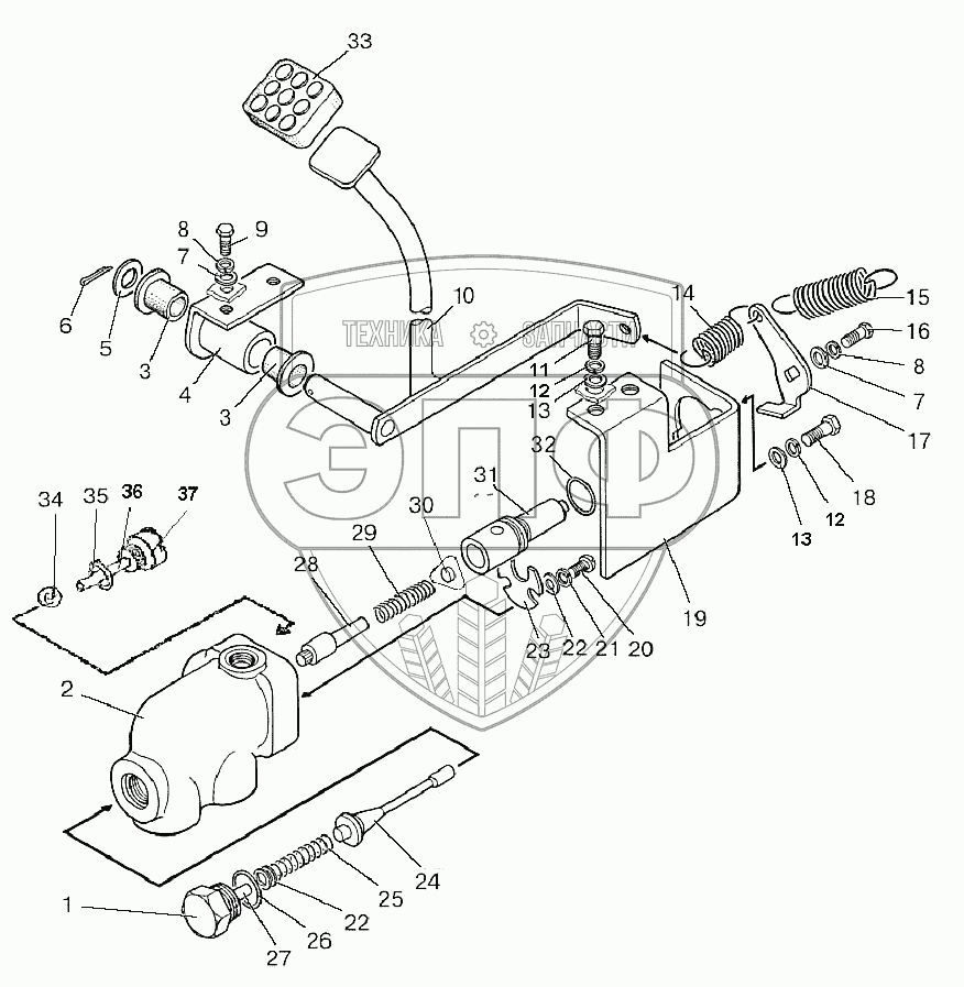 Каталог запасных частей к технике: МТЗ 92П. Педальное управление блокировкой дифференциала заднего мост