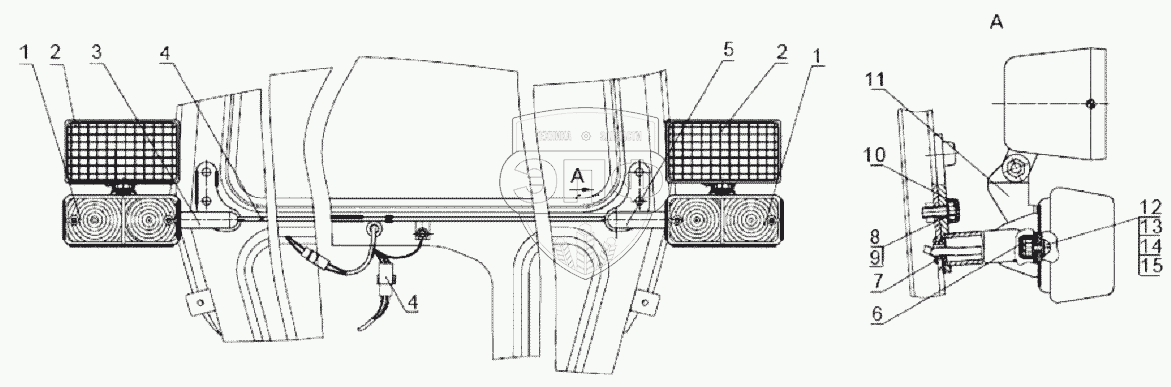 Каталог запасных частей к технике: МТЗ 952.5. Установка фонарей передних с рабочими фарами