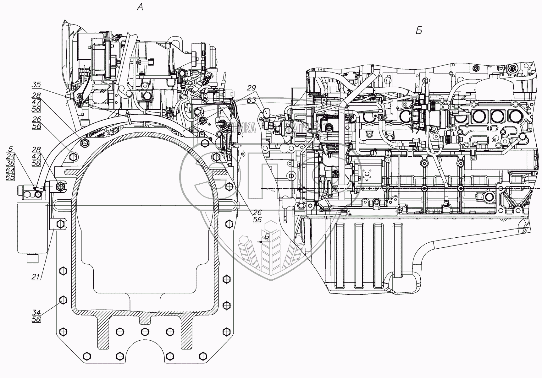 Каталог запасных частей к технике: МТЗ БЕЛАРУС 3522.5. Установка двигателя