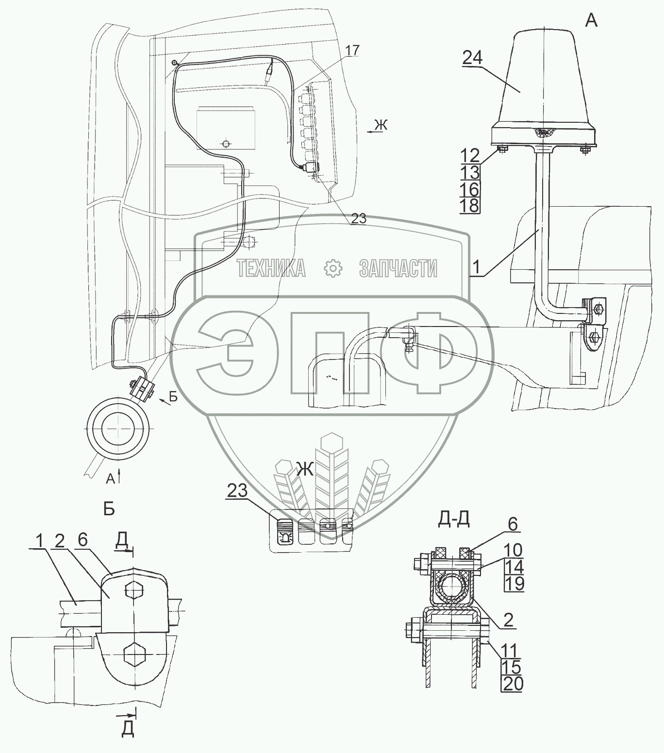 Каталог запасных частей к технике: МТЗ БЕЛАРУС 3522.5. Установка маяка сигнального
